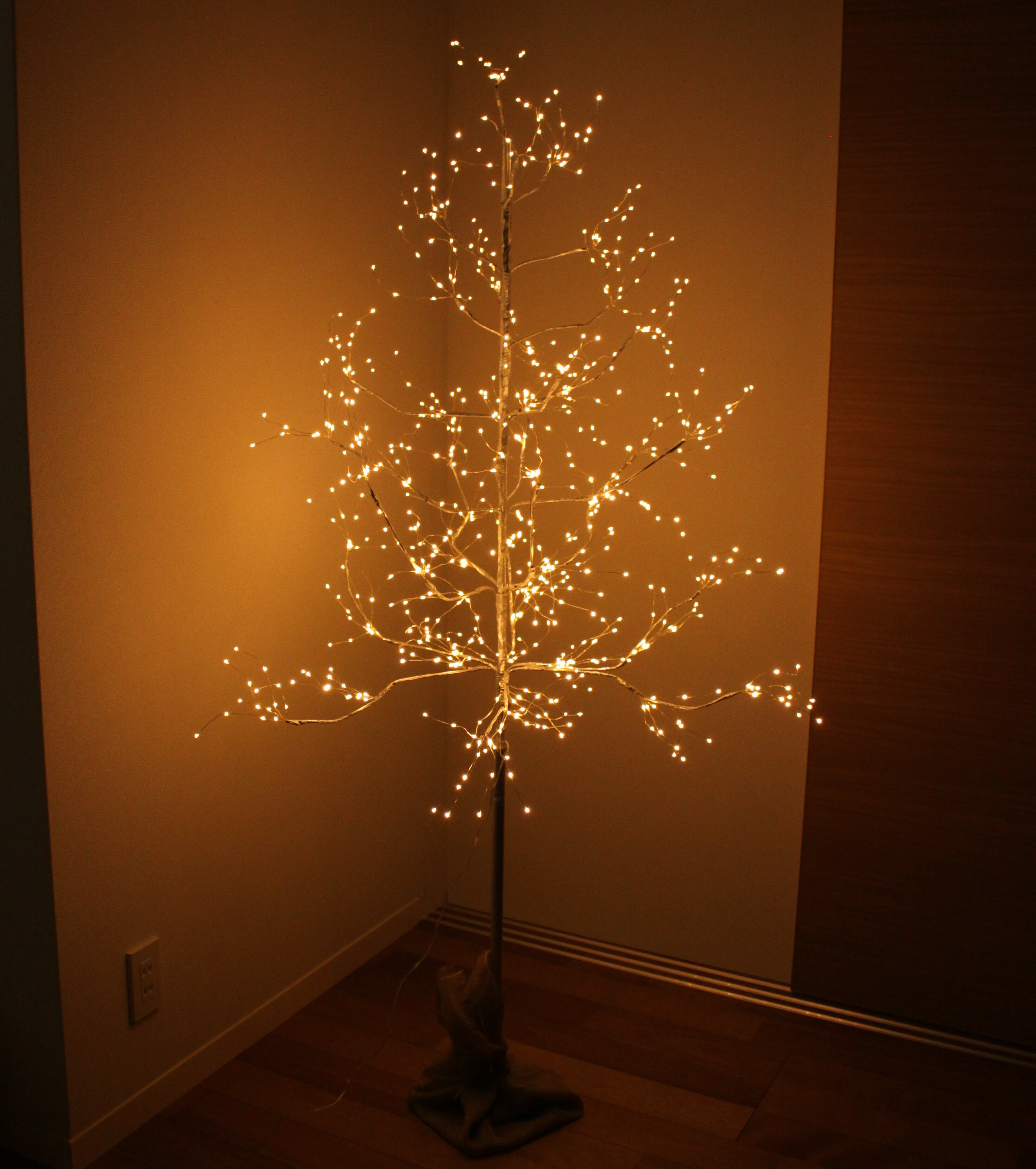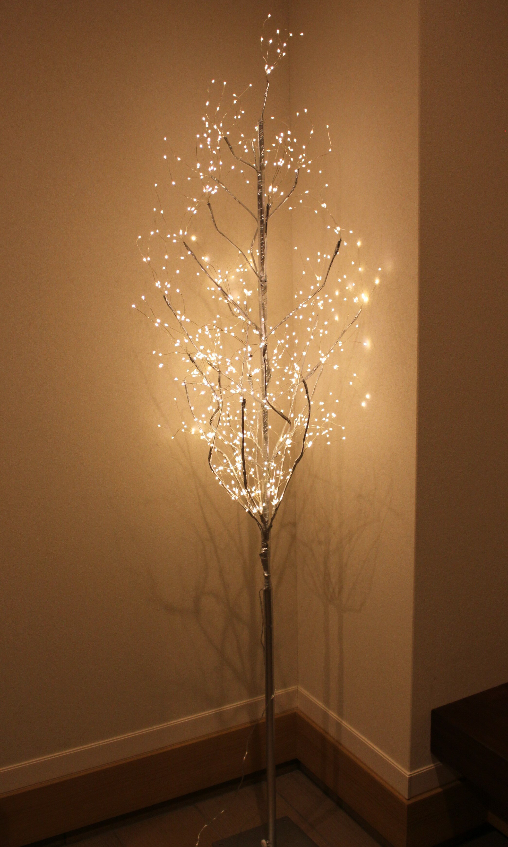 枝の先端に灯るLEDライトは、周囲を照らして幻想的な空間を作り出します。